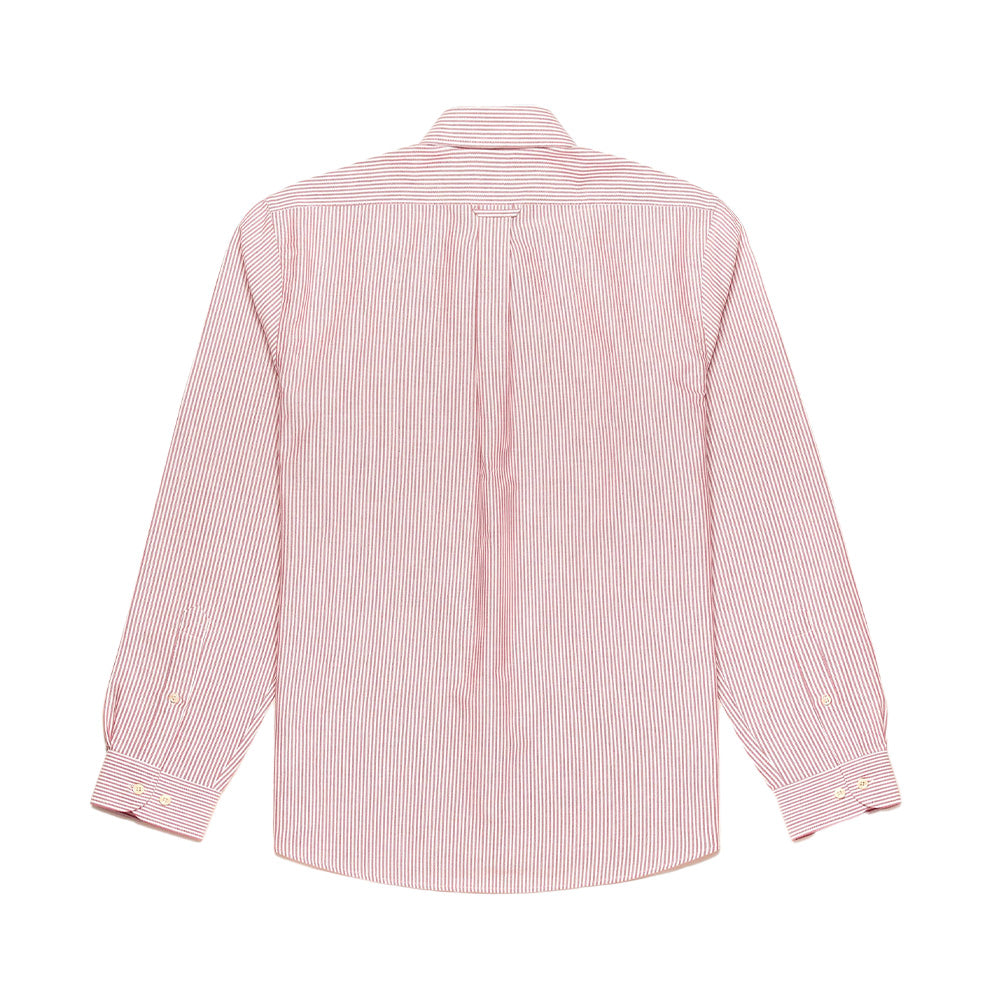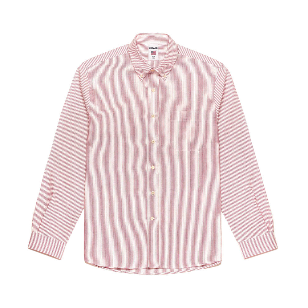 The button-down collar design with thin red and white stripes gives a timeless and elegant touch, perfect for both casual and more formal looks.