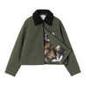 Il capo presenta un colletto in pile a contrasto, una chiusura frontale con zip a doppio cursore, due tasche frontali inclinate e una tasca sul petto con zip impreziosita dall’etichetta Square Label Carhartt Wip. La fodera interna stampata aggiunge un dettaglio distintivo, rendendo la giacca unica e versatile.